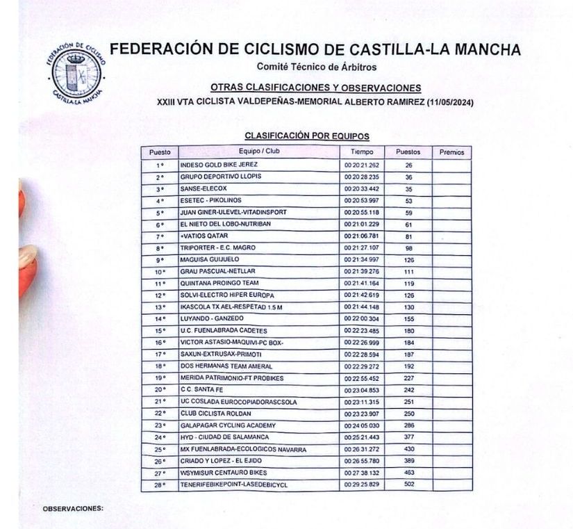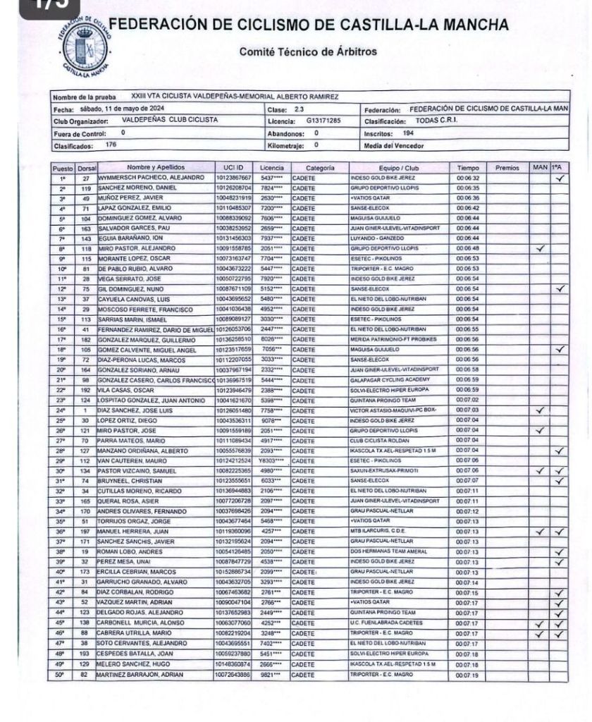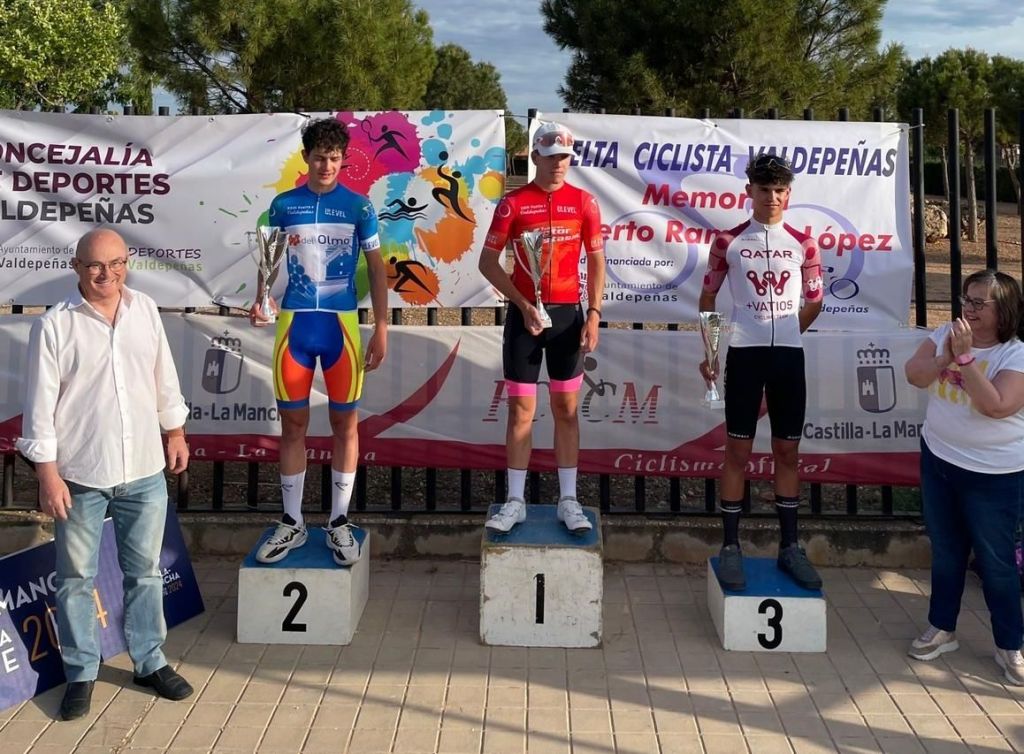 Alejandro Wymmersch (Indeso) se ha vestido de líder de la Vuelta Ciclista a Valdepeñas Cadete que ha comenzado hoy con una CRI de 4.5 kilómetros de recorrido. Ha estado acompañado en el podio, como vencedor de la primera etapa, por Daniel Sánchez (GD Llopis) y Javier Muñoz (+Vatios Qatar).