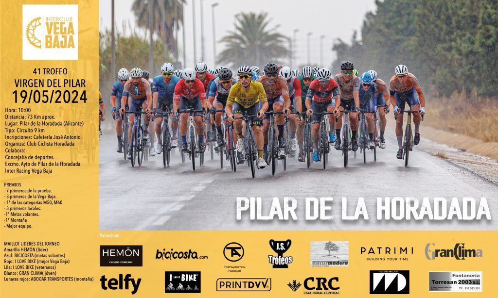 El Interclub Vega Baja sigue avanzando y con todo por decidir. Este domingo, a partir de las 10 horas, se disputa en Pilar de la Horadada el 41 Trofeo Virgen del Pilar con 73 kilómetros de recorrido. José Manuel Díaz Fenoll (Isotech-Dama) llega de líder con Alejandro Gómiz (Bici Costa), segundo, y, Joaquín Giménez (Mundo Bici), tercero. Gómiz es el primer élite; Anselmo Bernabé (Encacon) domina en Sub23; Joaquín Casanova, en M30; Díaz Fenoll, en M40; Francisco Antonio Quesada (Telfy-Catral), en M50; y Jozsef Juhasz (Tenerife), en M60. Julio Alberto Amores (Ciclos Sabater) figura al frente de la clasificación de la montaña; Gómiz es el líder de las metas volantes; y el Encacón es el mejor equipo.