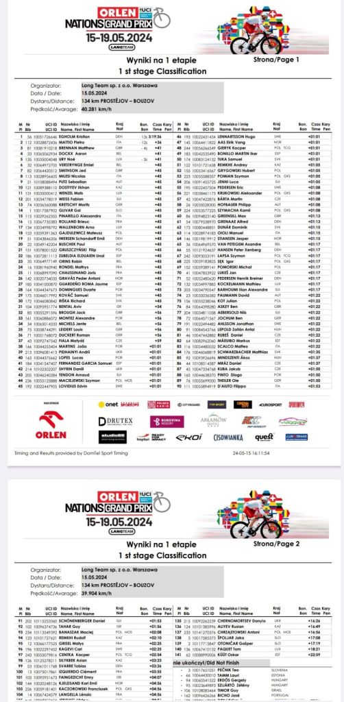 La carrera por etapas polaca, que se ha iniciado hoy sin embargo en República Checa, ha dejado una primera jornada marcada por la larga escapada protagonizada por el danés Kristian Egholm y el italiano Pietro Mattio, primero y segundo finalmente en la carrera. La Selección Española, compuesta por Iker Bonillo, Unai Zubeldia, Francesc Bennassar, Jaume Guardeño, Samuel Fernández y Unai Aznar se ha mostrado muy activa durante todo el día, bien posicionada en cabeza del pelotón y tratando de buscar también una posible escapada ante la vigilancia de equipos que han intentado dominar y buscar una llegada masiva como Bélgica.