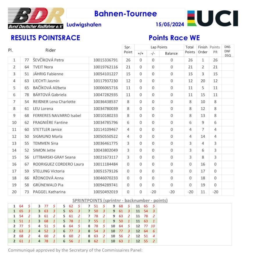 La primera prueba de la Bahnen Tournee en Ludwigshafen, la Silbernen Eulen, estuvo muy condicionada por el mal tiempo y varias de las pruebas previstas para el programa del miércoles fueron suspendidas. En Eliminación, Isabel Ferreres ocupó el puesto 14 y en Puntuación terminó novena. La sexta plaza de Álvaro Navas y la octava de Laura Rodriguez en sus respectivas eliminaciones fueron los mejores resultados de los ciclistas españoles participantes con la selección. Mario Anguela finalizó noveno.