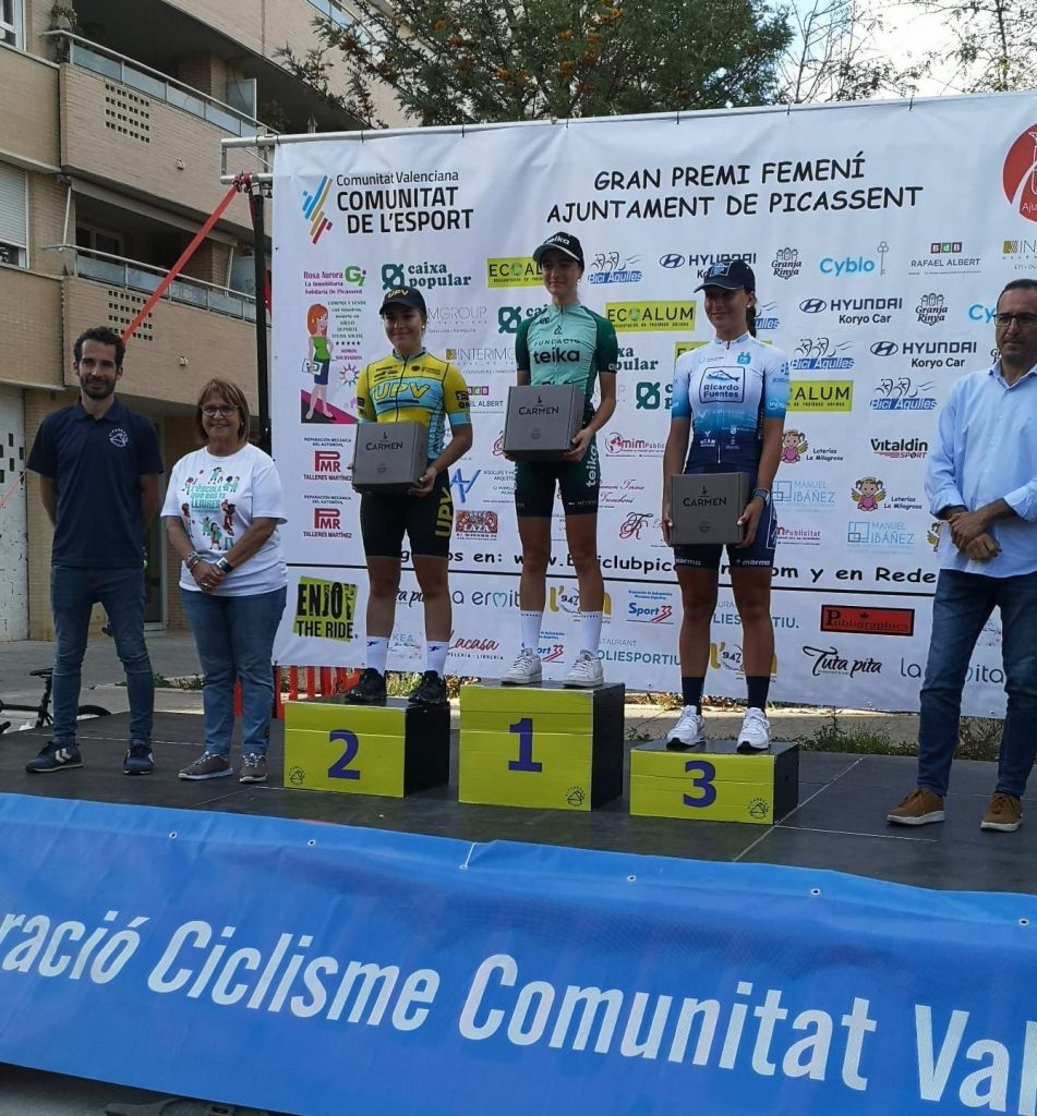 Hoy se ha disputado el VI Gran Premi Femení Ajuntament de Picassent «33 Memorial SALVADOR AGULLES», cuarta prueba de la Challenge FanSport de Féminas de la Comunitat Valenciana. Carla Bañuls (Teika Alé) y Ariadna Gutiérrez (Team Farto) han sido las vencedores de las dos pruebas disputadas. Bañuls ha estado acompañada en el podio por Amanda Miravet (UPV) y Gloria Fuller (Calderonabike). Y Gutiérrez, de Ainara Albert (Massi) y Aitana Calabuig (Tenerife).