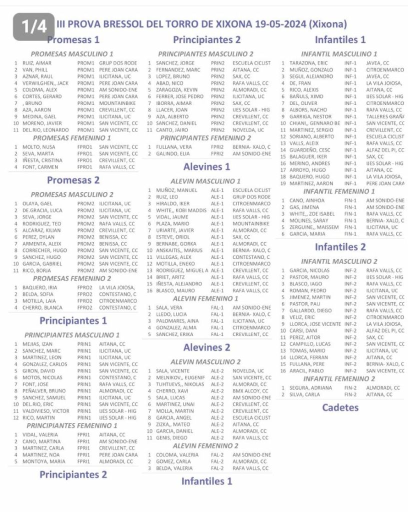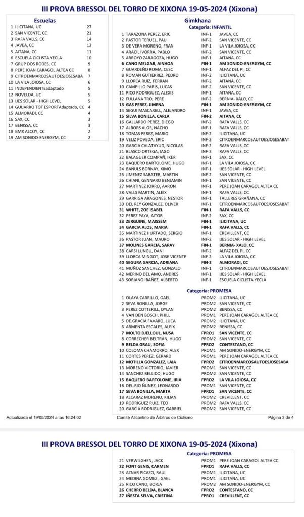 19/05 Xixona. Clasificaciones