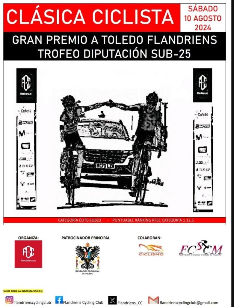 El próximo sábado 10 de agosto de 2024 en la población de Argés (Toledo) se dará el pistoletazo de salida del Gran Premio Ciclista a Toledo Flandriens – Trofeo Diputación sub-25. Un acuerdo firmado el pasado sábado entre el ayuntamiento de la localidad y el presidente del Flandriens Cycling Club.