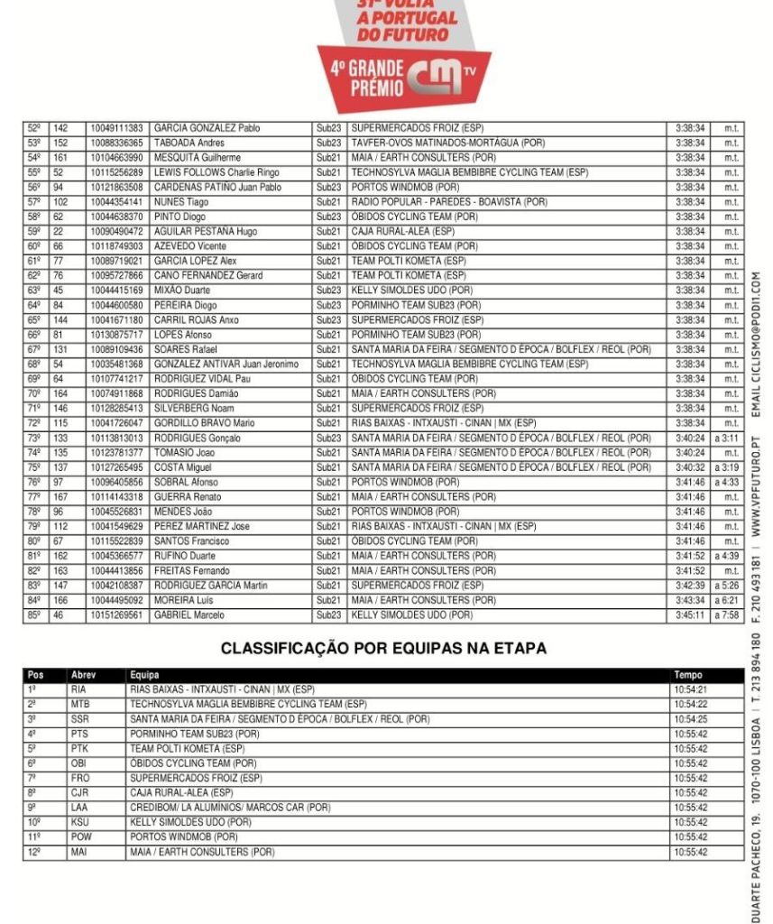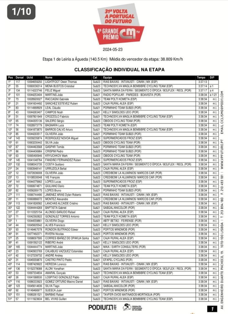 Lightfoot, de 21 años, ya contaba en su palmarés con una etapa de esta ronda. La consiguió el año pasado en Castelo Branco con los colores del Maglia Tecnosylva. Este triunfo, el primero de esta temporada para el ciclista inglés, eleva a cuatro el número de victoria de la formación flúor en 2024.