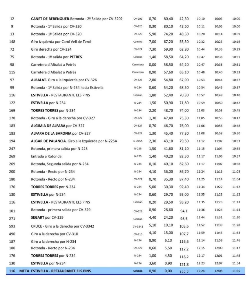 Los participantes recorrerán un total de 124 km, pasando por 16 municipios del Camp de Morvedre, antes de llegar a la meta en el Restaurante Els Pins.