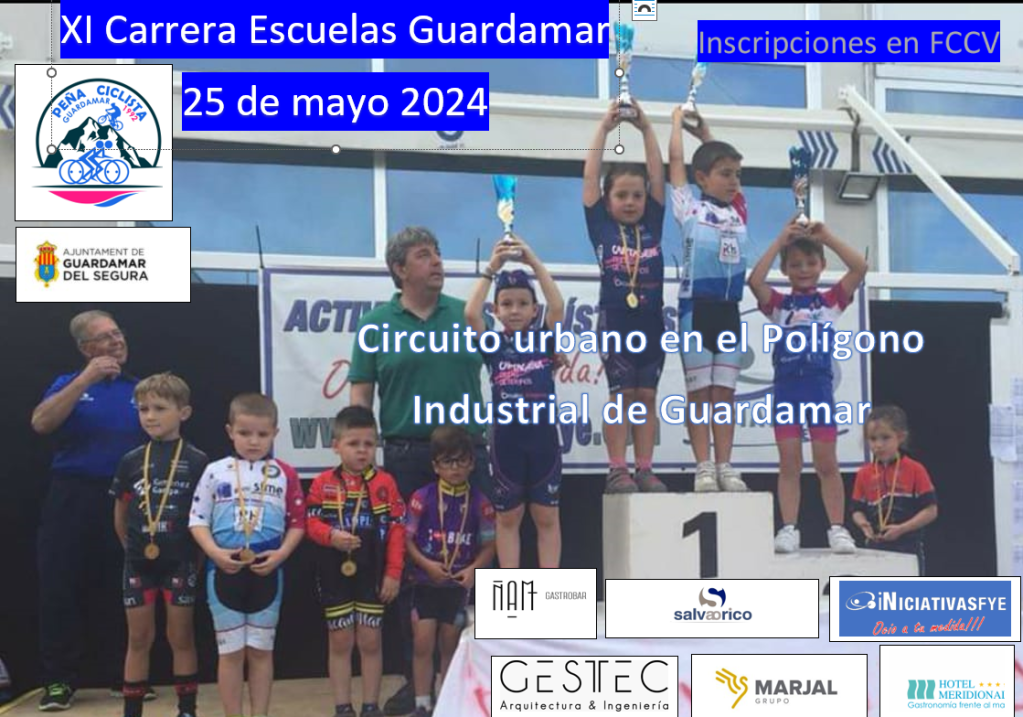 El sábado, 25 de mayo, se disputa la XI Carrera Escuelas de Guardamar, una nueva prueba de la Challenge de Ciclismo de Alicante. La prueba se desarrolla en el Polígono Industrial de Santa Ana de la localidad costera a partir de las 16 horas.