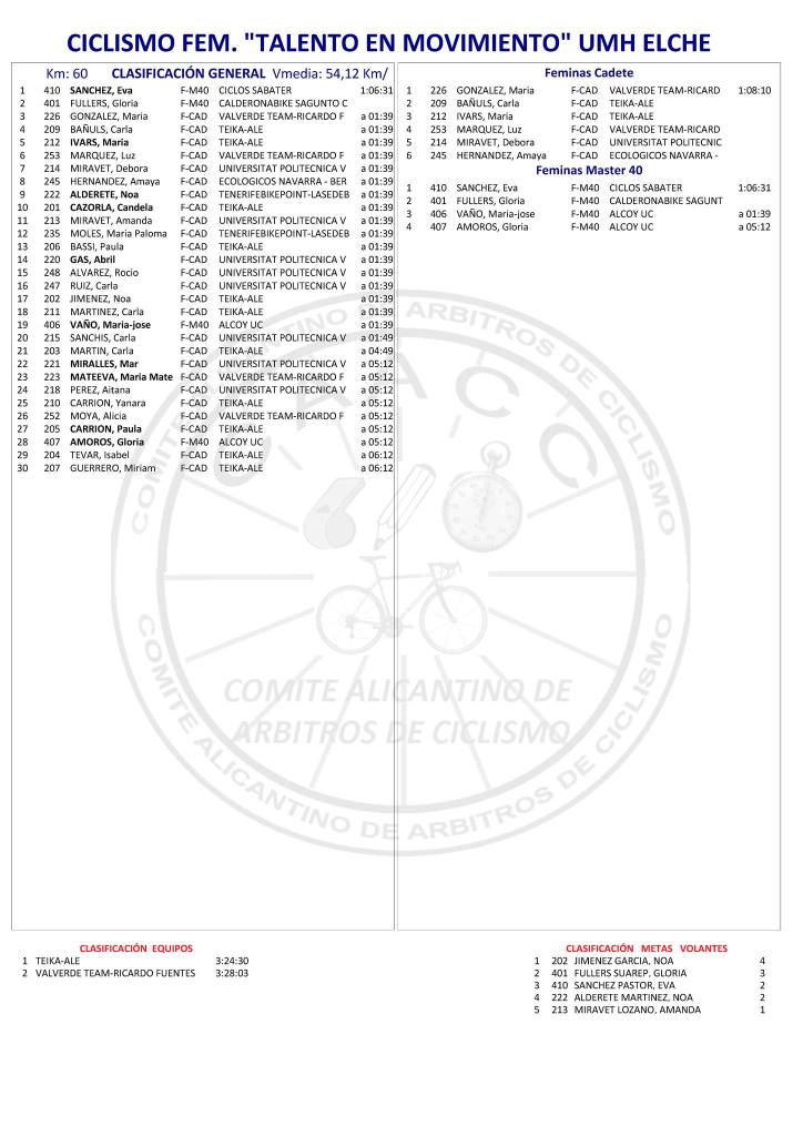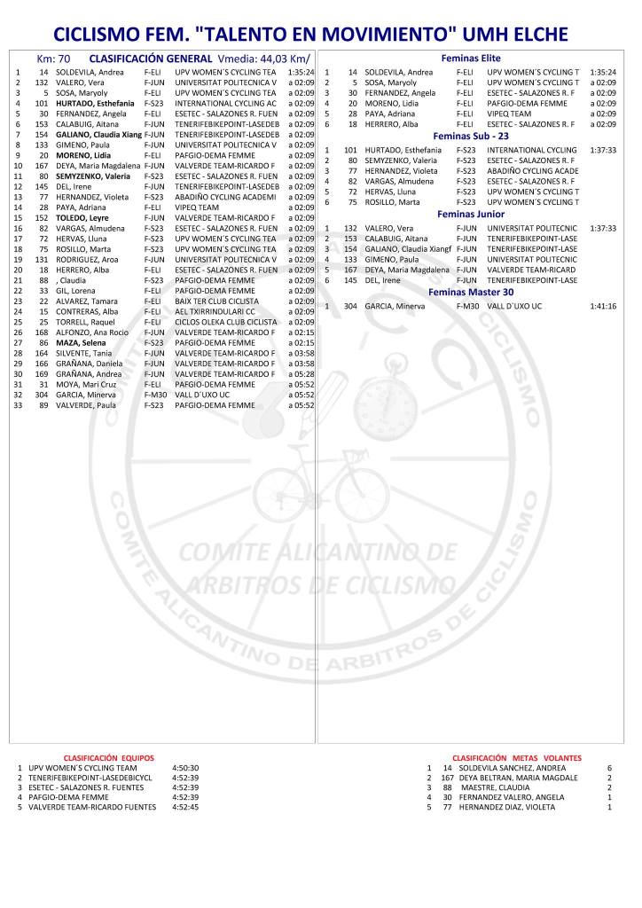25/05/24 – Elche (UC Ilicitana) – (Alicante). Clasificaciones