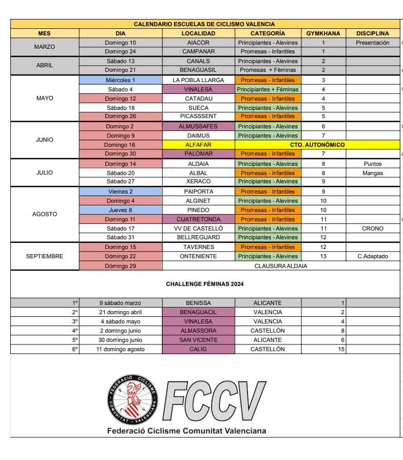 Calendario de Escuelas de Ciclismo de la provincia de València. General