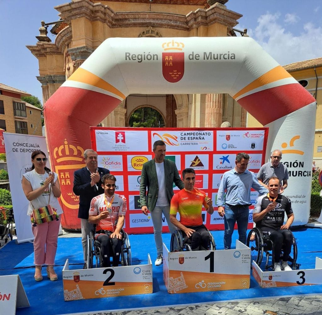 El Campeonato de España de Paraciclismo en carretera disputado este fin de semana en Caravaca ha traído a la Comunidad ocho medallas de oro: Ricardo Ten (2), Erika González (2), Inma Martínez-Cris Pulido (2) y Rosa Sansaloni (2). Todo ellos lograron el título de campeón de España tanto en la prueba en línea como en la contrarreloj. además Nacho Rodrigo-Óscar Hernández, lograron una plata en la contrarreloj y un bronce, en línea; mientras que Alejandro Gómiz, formando tándem con Joan Sanso y representando a Baleares, sumaron un bronce y una plata en la misma categoría; y Héctor Estudillo terminó tercero en MH3 en línea y esa mima posición quedó Carlos Sarrías en MC1, tanto en línea como en la crono. La FCCV y el Hyundai-Koryo Car-Dstrel han dejado huella en el Nacional y demostrado que se está realizando un buen trabajo. Se han traído un botín de ocho oros, una plata y tres bronces y la sensación de dejarlo todo en cada carrera.