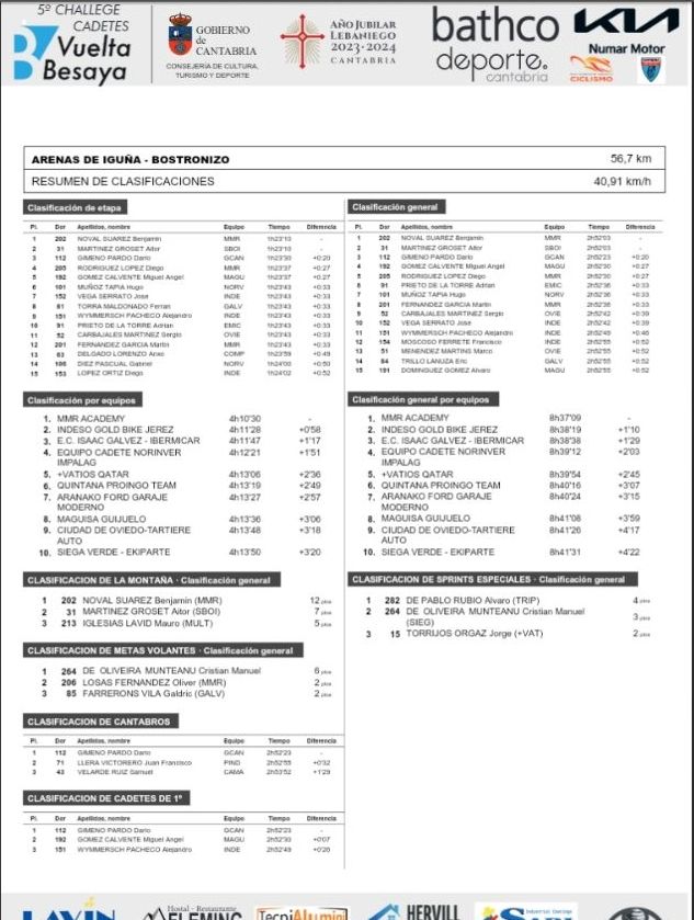Etapa 1. 31 de mayo. Renedo de Piélagos-Renedo de Piélagos. Clasificaciones