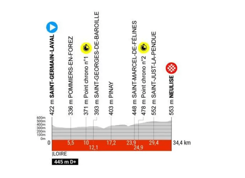 4ª Miércoles 5 junio. Saint-Germain-Laval (13:40)-Neulise (16:44), 34,4 kms, contrarreloj individual