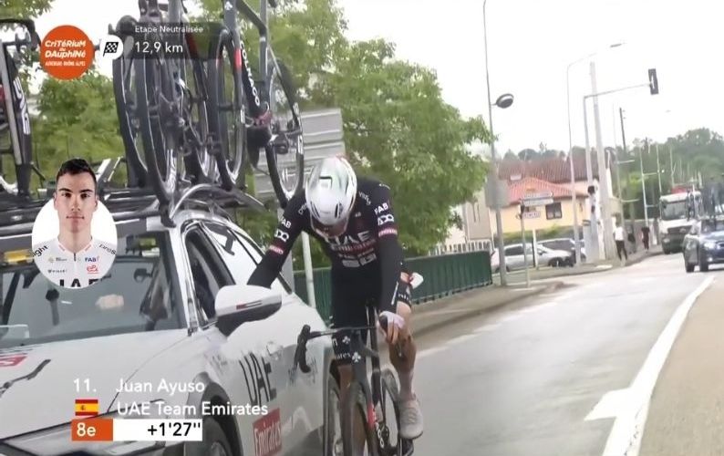 A poco más de 20 kilómetros de la meta, la quinta etapa del Critérium du Dauphiné se vio obligada a detenerse. Una treintena de corredores del pelotón se fueron al suelo en una carretera muy resbaladiza. Posteriormente, la organización decidió neutralizar a los corredores hacia la meta y no se declaró ningún ganador.