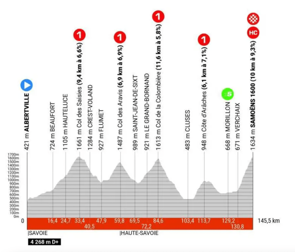 7ª Sábado 8 junio. Albertville (10:30)-Samoëns 1.600 (14:49), 145,5 kms