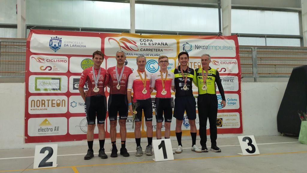 Nacho Rodrigo-Miguel Penades (Ulevel Paracycling Team) han sido los ganadores, en MB, con Javi Vaquero-Julio Rodrigo (Ulevel Paracyling Team), segundos, y Rubén Capdevila-Loys de Tayrac, cuartos. en el Gran Premio Vilaño, penúltima prueba de la Copa de España de Ciclismo Paralímpico que se ha disputado bajo la lluvia esta mañana en A Laracha (A Coruña). Rosa Sansaloni (Ulevel Paracycling Team) también se ha impuesto en WC5 tras sufrir un pinchazo. Además, Héctor Esturillo (Hyundai Koryo Car-Dstrel) termina segundo, en MH3, tras Javier González (Viclas).