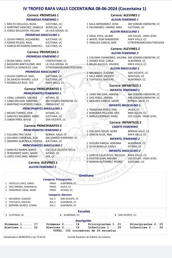 08/06 Cocentaina. IV Trofeu Rafa Valls. Clasificaciones