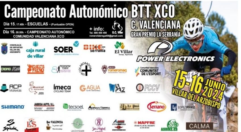 Ya, el domingo, Villar del Arzobispo el Campeonato de la Comunitat Valenciana de BTT-XCO, a partir de las 09:00h. La competició que vestirá a los nuevos campeones autonómicos estará organizada por la Unión Ciclista Villar del Arzobispo. Como novedad este año 2024 las categorías de Máster se dividen en A y B (siempre que haya un mínimo de tres participantes), por lo que habrá título en juego para Másters A (30-34 / 40-44 / 50-54 / 60-64) y Masters B (35-39 / 45-49 / 55-59 / 65 – 69).