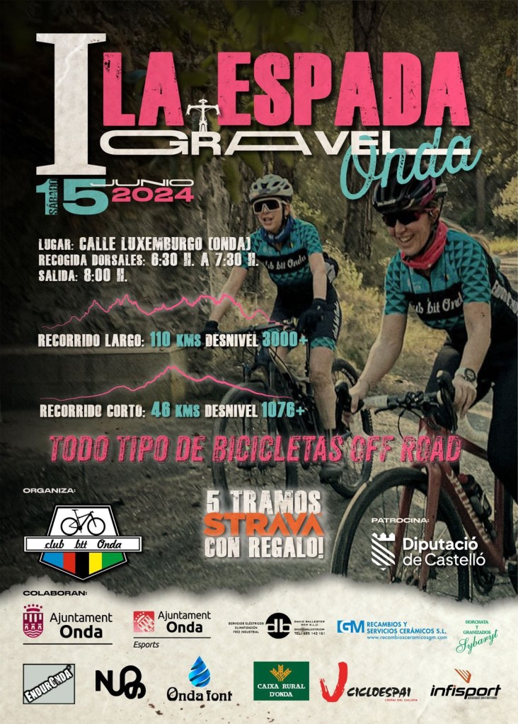 El sábado, día 15 de junio, a partir de las 8 horas, se disputa «La Espada» – Gravel Onda», primera aventura de esta modalidad ciclista que recorre la Sierra Espadán. La prueba está organizada por el Club Ciclista BTT de Onda. La salida y llegada será de la población de Onda y habrá dos distancias: Una de 98,61 km 3014 + y otra con una distancia 46 km 1076 +. El recorrido será por pista, tramos de doble vía asfaltada y pistas hormigonadas. Este recorrido es idóneo para la bicicleta gravel, pero no quiere decir que no se pueda participar con tu bicicleta de montaña.