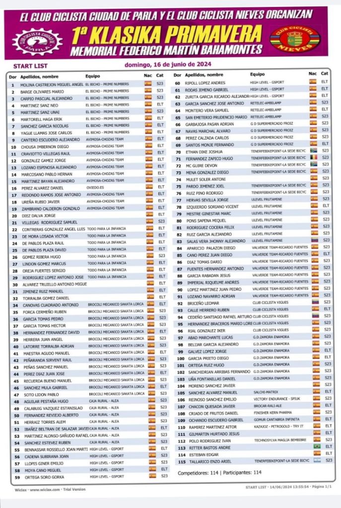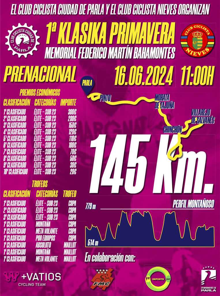 La I Klasika Primavera-Federico Martín Bahamontes para corredores Élites-Sub23 se disputará el domingo 16 de Junio. La carrera homenajeará al legendario escalador toledano fallecido en agosto de 2023, y será la mejor preparación para los Campeonatos de España, que se disputarán apenas una semana después en la Comunidad de Madrid.