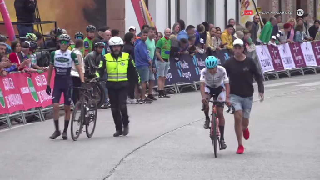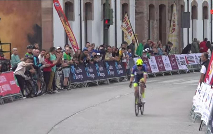 Javier Cubillas, que está corriendo con el Baqué, ha entrado en el grupo de los mejores, ha sufrido una caída y ha entrado en meta andando con la bicicleta en la mano. Ha pasado por el Hospital y le han puesto unos puntos en la rodilla. No podrá salir en la etapa 2.