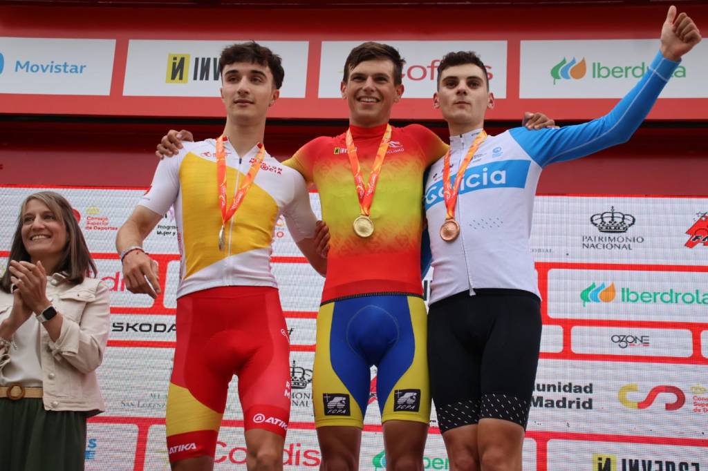 La falta de entendimiento entre los cinco ha provocado que fueran cazados por la formación perseguidora, hasta la que ya habían llegado ciclistas procedentes del pelotón como De la Calle, Rey o Carrascosa. Ya con ambos grupos unificados, el repecho empedrado previo a línea de meta ha terminado siendo el juez y ahí De la Calle ha protagonizado una arrancada sensacional que nadie ha podido seguir. El asturiano se ha proclamado campeón de España con unos pocos segundos con respecto al murciano César Pérez, que ha ocupado la segunda plaza, y al gallego Martín Rey, que también desde el pelotón, ha conseguido subir al podio como tercero en una resolución emocionantísima que será, seguro, uno de los grandes momentos de este Campeonato de España de la Comunidad de Madrid 2024.