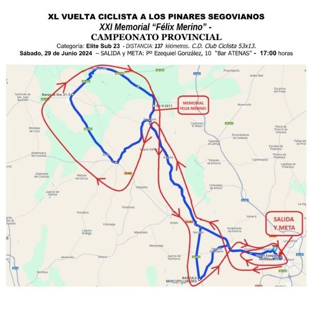 El sábado se disputa la 40º Vuelta Pinares Segovianos – Memorial Félix Merino Pérez, organizada por el CDCC 53×13. Contará con un recorrido de 137 kilómetros de recorrido con salida y llegada en la capital segoviana.