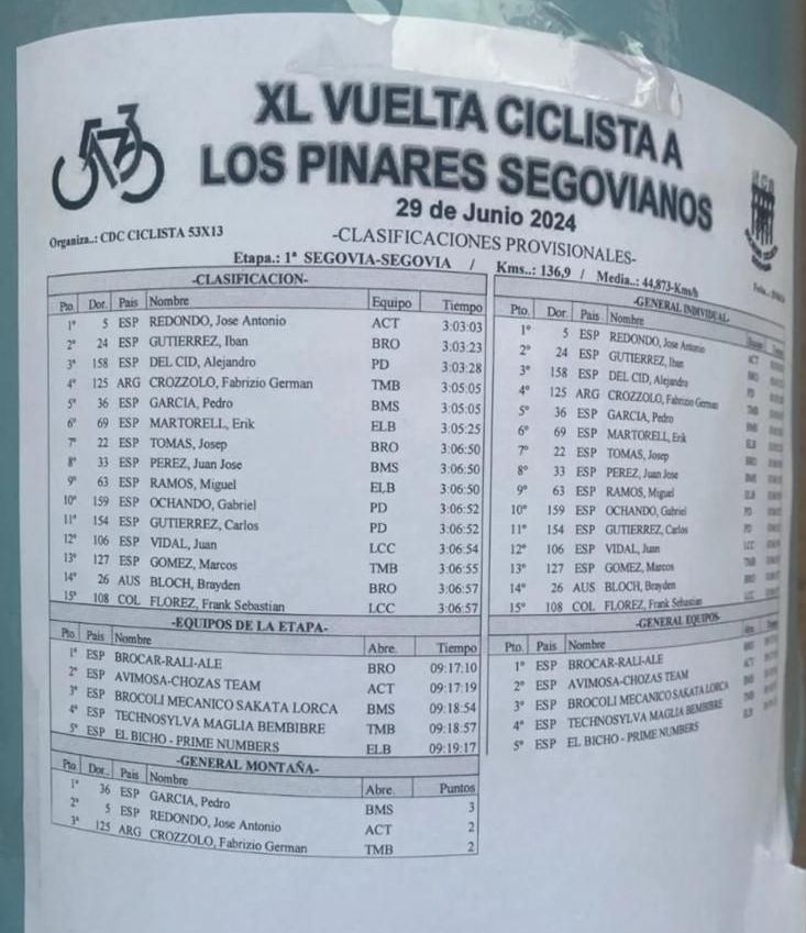Ibán Gutiérrez (Brocar Rali Alé) ha rozado el triunfo en la XL Vuelta a los Pinares Segovianos. El corredor valenciano termina segundo, sólo superado por José Antonio Redondo (Avimosa). Alejandro del Cid (Gomur) ha completado el podio. Los tres protagonizaron la escapada del día junto a Fabricio Crozzolo (Technosylva-Maglia), Eric Martorell (El Bicho-Prime Numbers) y Pedro García (Brócoli-Mecánico Sakata). Una vez más el empedrado de la subida de La Piedad de Segovia eligió a los mejores.
