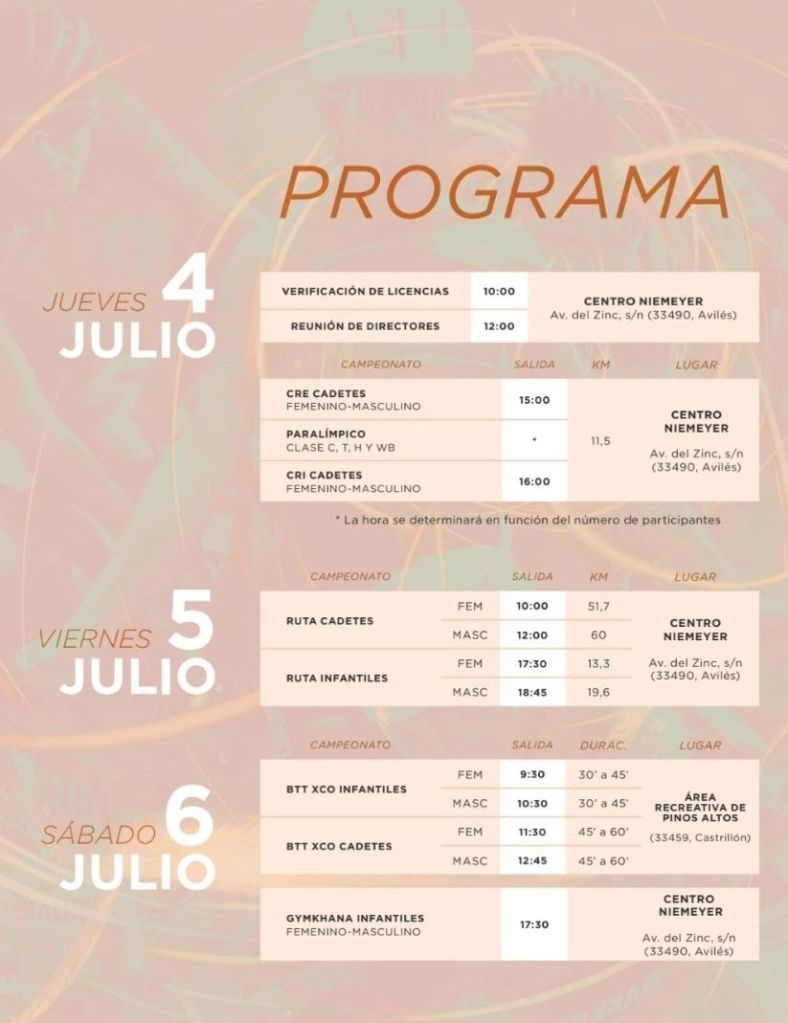 Cabe destacar que el Centro Niemeyer de Avilés será el centro neurálgico de este Campeonato de España Escolar 2024 y, además, acogerá las llegadas y salidas tanto de las contrarrelojes como de las pruebas en ruta.