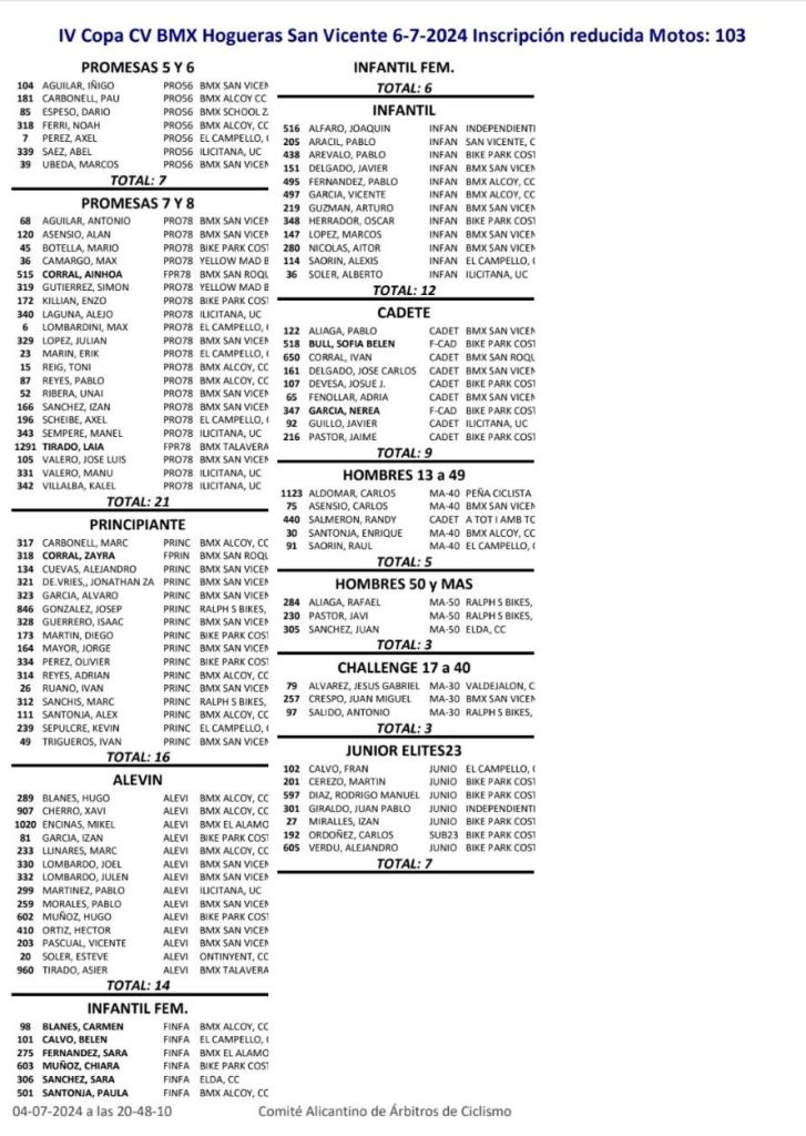 Calendario de la Copa BMX de la CV. General
