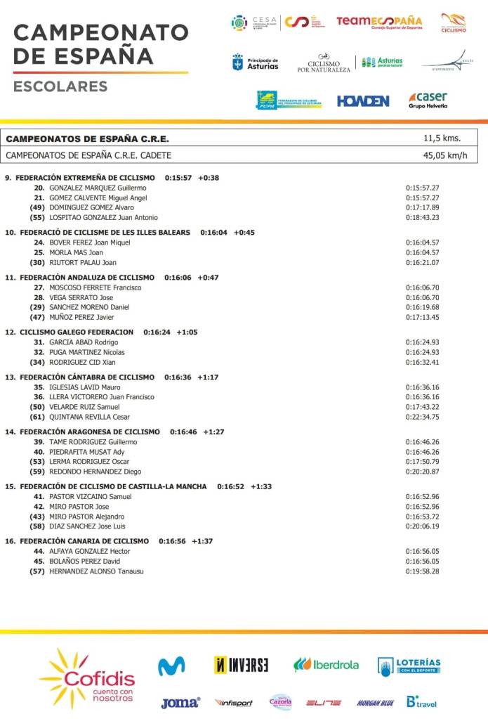 Óscar Morante: «Veníamos con las ideas muy claras y era entrar en las medallas. Sabíamos que haciendo toda la crono concentrados y bien podíamos optar al oro y así lo hemos conseguido. Desde el principio nuestro director Ángel nos ha dado confianza y quitado presión para estos campeonatos. Agradecer a toda la Federación de la Comunidad Valenciana por la oportunidad y inmejorable trato que estamos recibiendo».