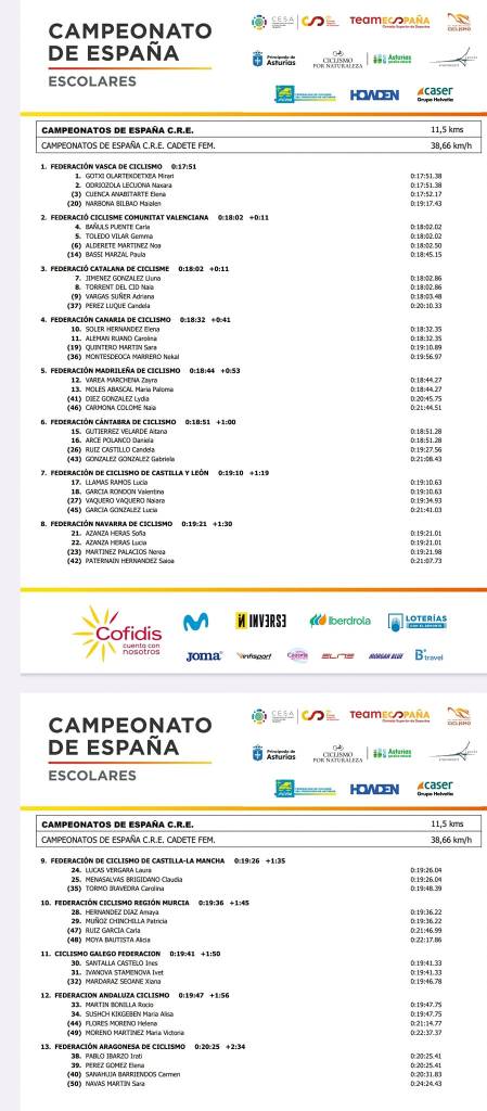 Noa Alderete: «La sensaciones de hoy en la contrarreloj con todas mis compañeras ha sido muy buenas. He tenido un buen rendimiento en la crono y ahora a recuperar y pensar en la carrera para mañana en ruta. Lo daremos todo de nuevo e intentaremos hacerlo lo mejor posible».