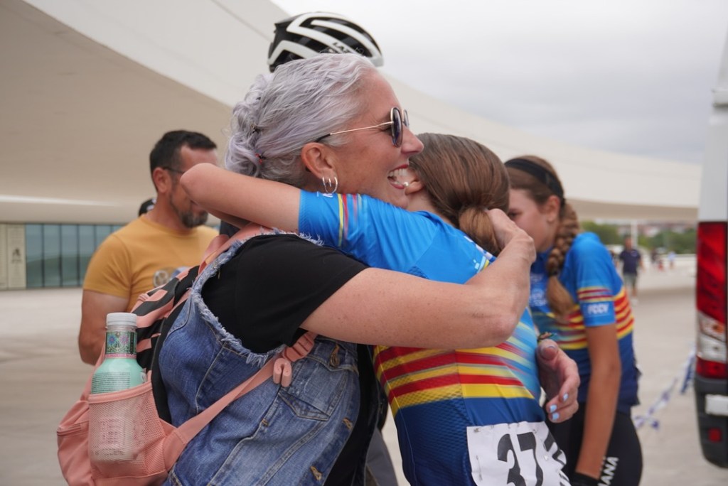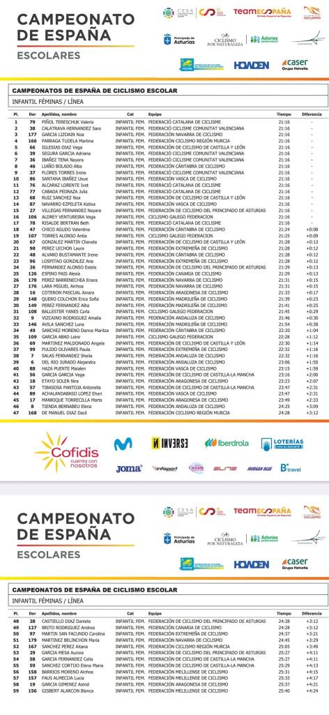 Impresionante Sara Calatrava en la prueba en ruta del Campeonato de España de Ciclismo Escolar que se está disputando esta tarde en Avilés. La corredora de la FCCV se ha proclamado subcampeona de España Infantil Femenino. Sólo ha sido superada en un emocionante esprint por Valeria Piñol (Cataluña). Noa García (Navarra) ha finalizado tercera. Sara ha realizado una remontada espectacular.