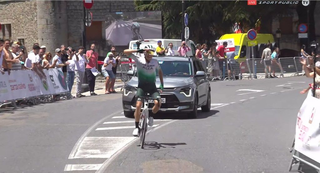 Álex Díaz: “A falta de 100 kilómetros hemos metido cuneta los seis del equipo y luego nos hemos ido Ibáñez y yo, y cuando he visto qué pedalada llevaba él y teniendo en cuenta la exhibición que hizo el otro día en Murguia, yo también me sentía bien y nos hemos entendido perfecto para ir rápidos tanto en subida como en el llano. Al final a falta de 20 para meta Ibáñez ya ha dado todo lo que tenía y he podido mantener la ventaja hasta meta. Estoy muy contento porque hemos hecho una exhibición colectiva y con ganas y con confianza de defenderlo mañana”.