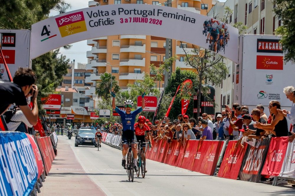 La situación de carrera, sin embargo, acabaría decantándose en la subida de tercera categoría, en Sobral de Monte Agraço. Buscando luchar por la general de la montaña, India Grangier atacó el pelotón, llevándose consigo a Titia Ryo (Arkéa-B&B Hotels) y Nicole Steinmetz (Cynisca Cycling).