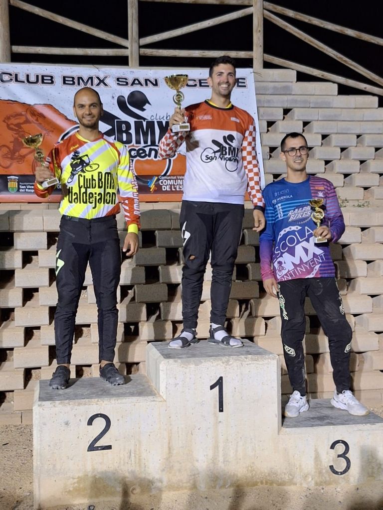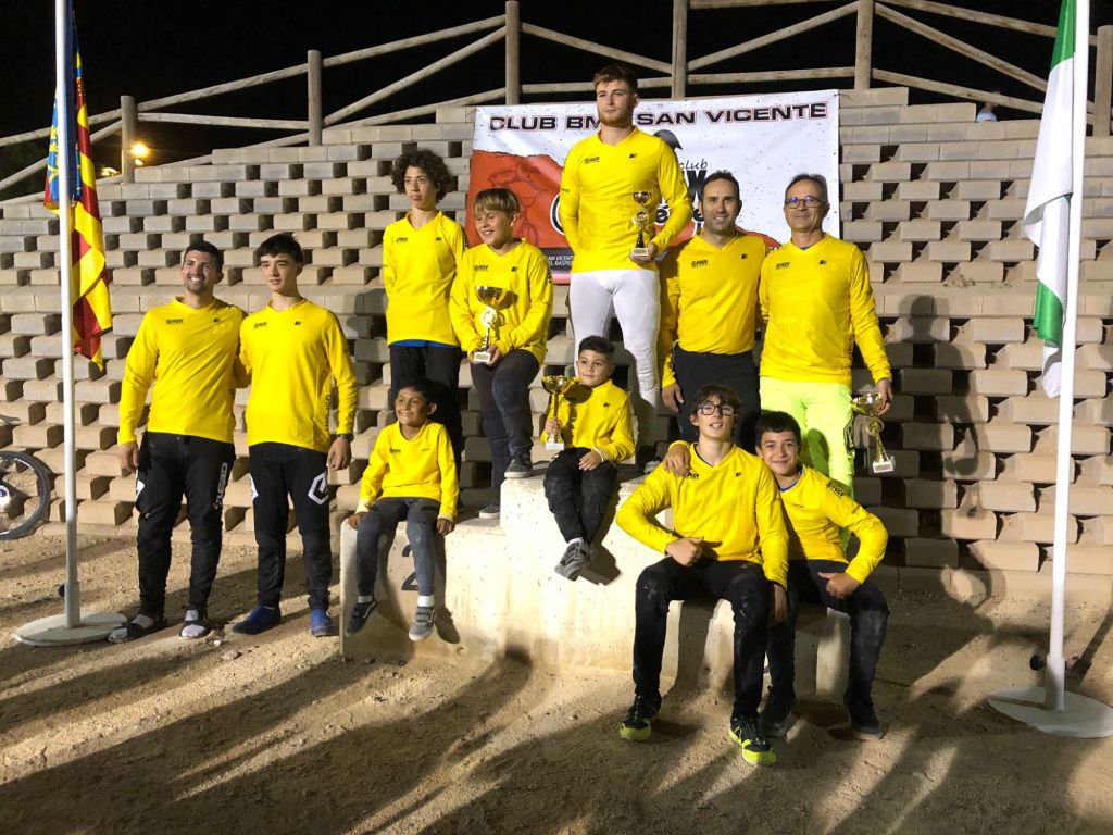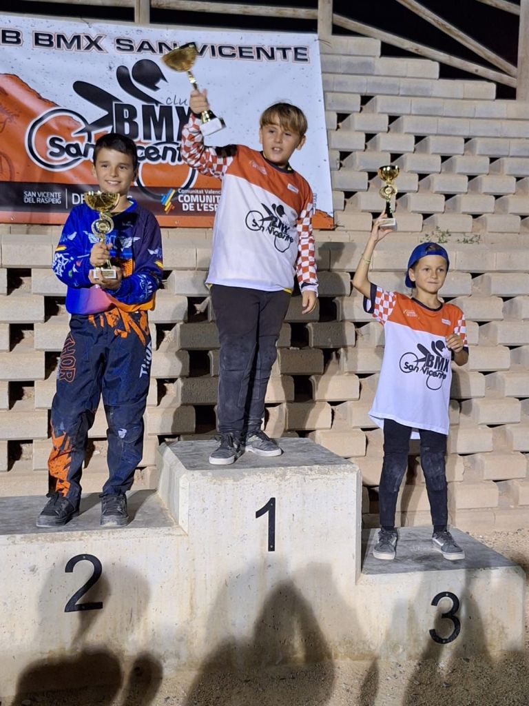 San Vicente del Raspeig ha acogido hoy la cuarta prueba de la Copa BMX de la Comunidad Valenciana. El Trofeo Hogueras San Vicente ha tenido estos ganadores: Darío Espeso (BMX School) se impuso en Promesas 5 y 6 (El Campello); Max Camargo (Yellow) y Ainhoa Corral (BMX San Roque), en Promesas 7 y 8; Zayra Corral (BMX San Roque) y Jorge Mayor (BMX San Vicente), en Principiantes; Xavi Cherro (BMX Alcoy), en Alevines; Chiara Muñoz (Bike Park Costa Blanc) y Aitor Nicolás (BMX San Vicente), en Infantiles; Jaime Pastor (Biker Park Costa Blanca) y Belén Bull (Bike Park Costa Blanca), en Cadetes; Enrique Santonja (Alcoy), en Hombres, de 40 a 49; Javi Pastor (Ralph’s), en Hombres 50 y más; Juan Miguel Crespo (BMX San Vicente), en Challenge 17 a 19; Alejandro Verdú (Bike Park Costa Blanca), en Júnior; y Carlos Ordóñez, en Élite y Sub 23.