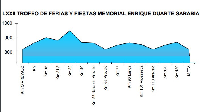 Hoy lunes, 8 de julio a partir de las 17 horas, tendrá lugar en Arévalo (Ávila) el LXXII Trofeo Ferias y Fiestas de Arévalo – Memorial Enrique Duarte Sarabia. Bajo la organización del CDC Arevalense se disputará una carrera para Élites y Sub23 sobre una distancia de 143 kilómetros de recorrido. La salida es a las 17 horas.