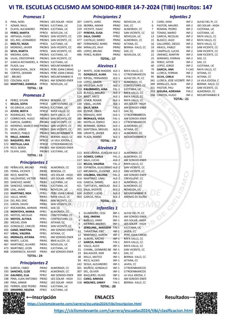 19/05 Xixona. Clasificaciones