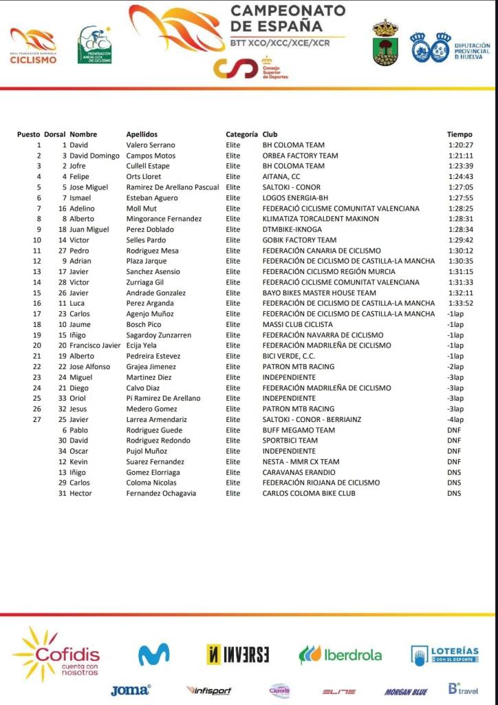 Estíbaliz Sagardoy remonta en la última vuelta y se lleva el Campeonato de España de XCO de féminas, por delante de Nuria Bosch y Sofía Rodríguez. Puesto 13 para Elena Lloret (FCCV). Marta Cano ha sido la primera Sub 23, con Edurne Izcue y Lucía Macho en el cajón a su lado. Novena posición para Carla Pérez (FCCV).