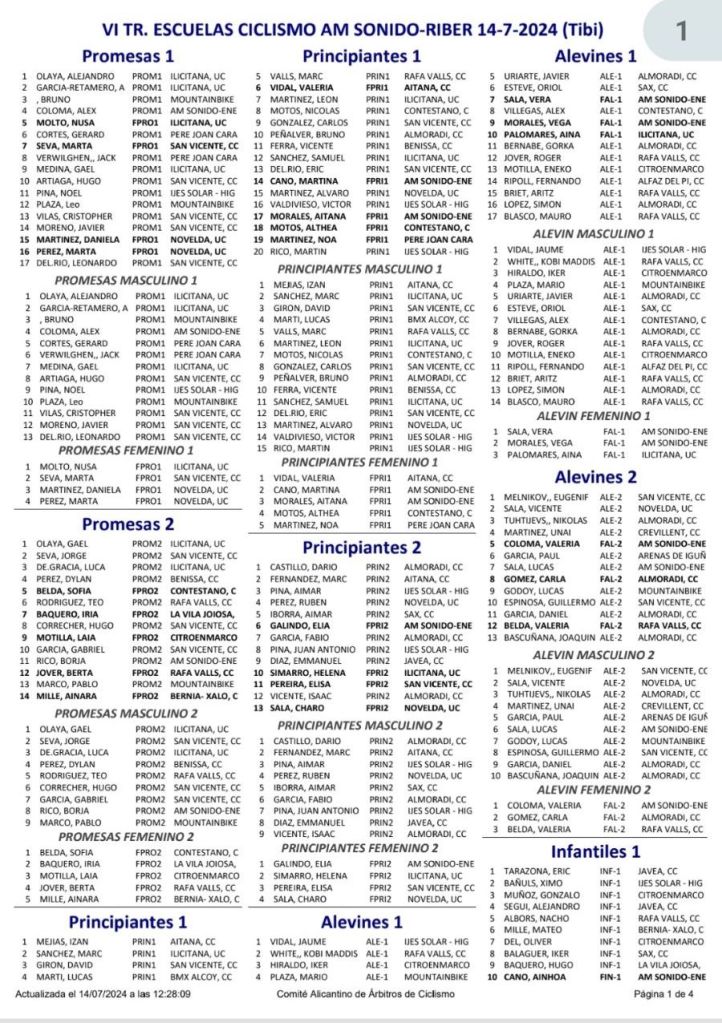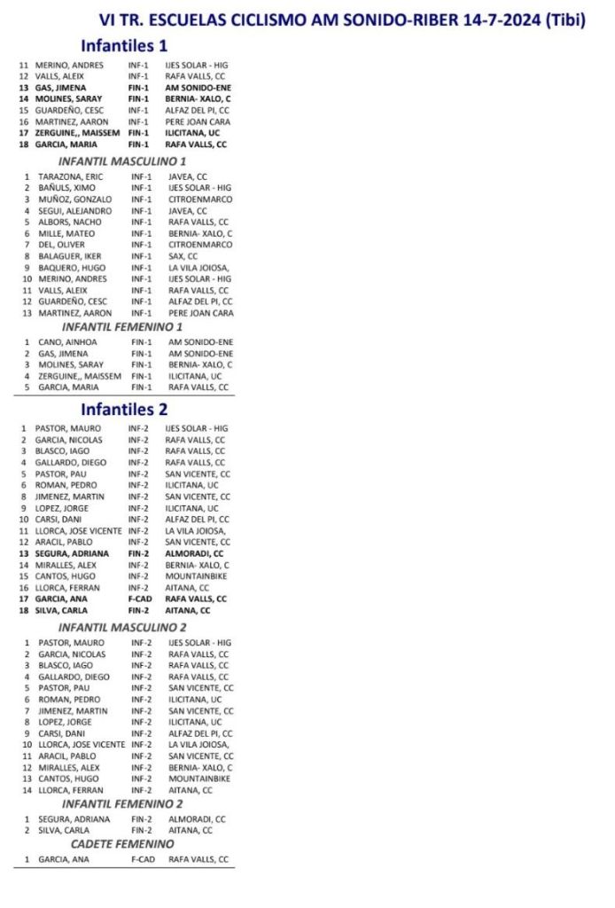 08/06 Cocentaina. IV Trofeu Rafa Valls. Clasificaciones