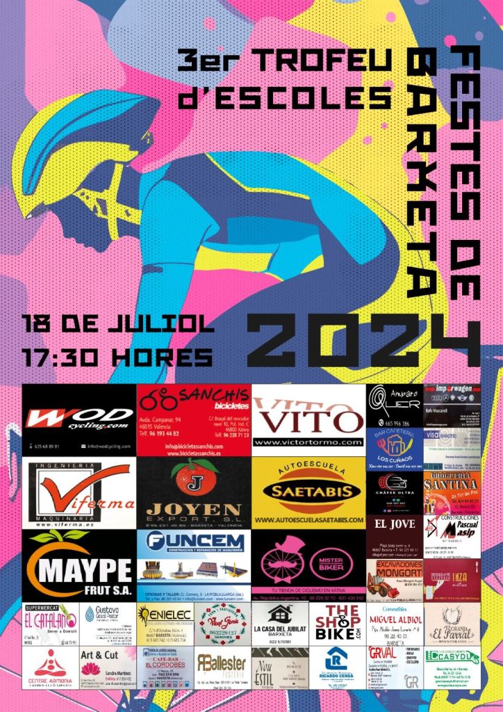 El jueves, día 18 de julio, se disputa el III Trofeu d’Escoles de Festes de Barxeta. La prueba se retrasa a las 18.00 horas debido al calor y se darán cita en dicha competición escolares de toda la Comunidad Valenciana. El martes se cerró el plazo de inscritos de la prueba puntuable para la Challenge de Escuelas de la provincia de València. Lista de inscritos