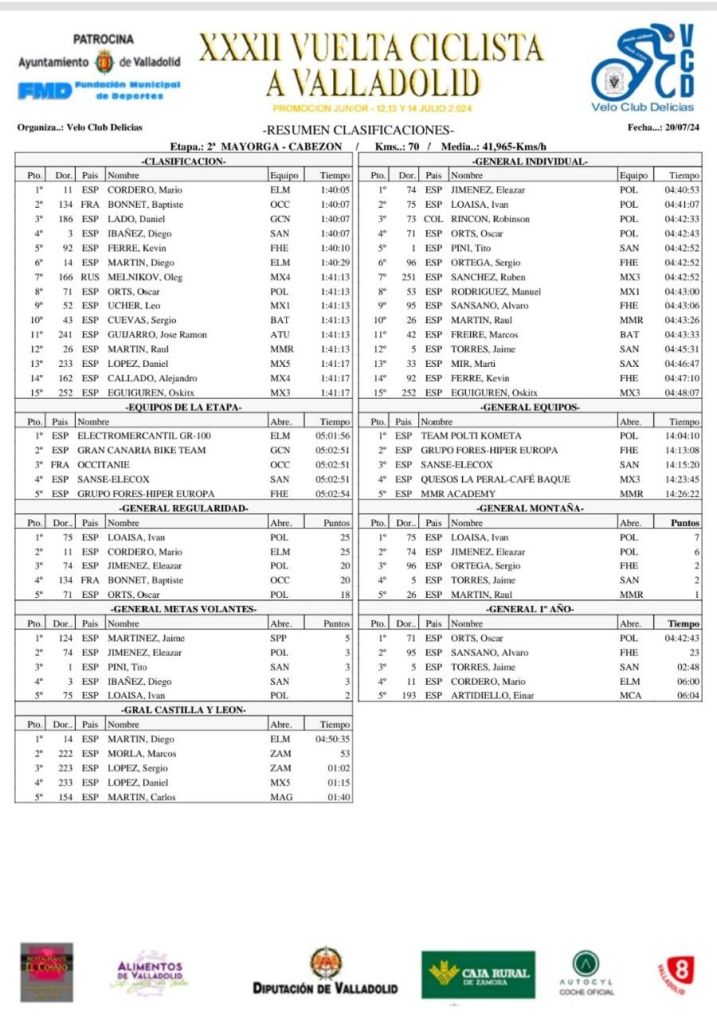 Eleazar Jiménez (Team Polti Kometa) es el nuevo líder y Óscar Orts ya es cuarto y sigue comandando la clasificación de los jóvenes.