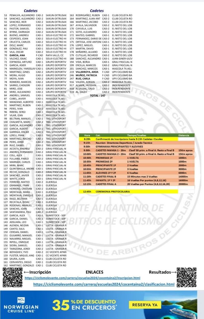 El Club Ciclista Contestá, organizador de la competición va a lograr reunir a más de 300 participantes: 156 escolares y 147 cadetes. ¡Todo un récord!.
