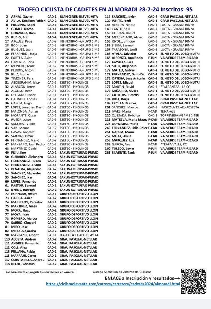 El Club Ciclista Almoradí ha diseñado una atractiva jornada de ciclismo para el día 28 de julio. Se disputa la primera edición del Trofeo Cadete Almoradí 2024 y la prueba que pone el punto y final al Interclub Vega Baja, el Villa de Almoradí, que celebra sus bodas de plata.