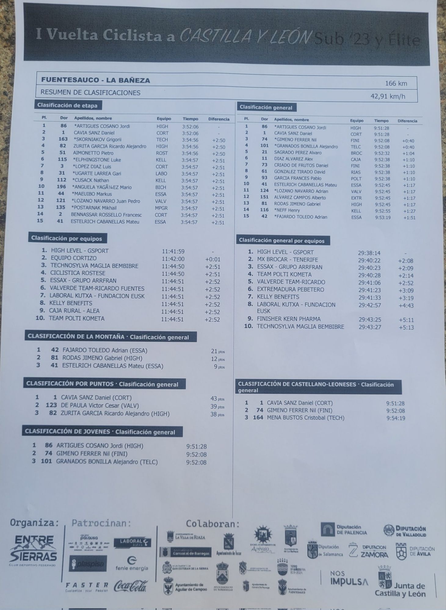 Jordi Artigues: «A principio de la etapa se ha formado una fuga en la que iba un compañero. Me he sentido con buenas piernas y he atacado desde atrás. A base de relevos con otros corredores hemos podido cazar adelante. Nada más llegar he vuelto a atacar y junto a Cavia hemos hecho hueco. Nos la hemos jugado al esprint y ha salido bien. He ganado la etapa, me he vestido de líder de la General y de la clasificación de los jóvenes y el equipo, que ha estado sensacional, ha sido el mejor de la jornada. Ha salido todo redondo».