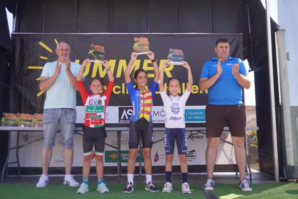 José Manuel Perales y Sara Calatrava (EC Pinedo) lograron el sábado el triunfo, en la categoría de Infantiles 2, en Xeraco, la Carrera Ciclista de Escuelas. Perales superó al resto con cierta superioridad con su nuevo maillot, el del Granja Rinya-BC Picassent, tras abandonar el CC Ontinyent. La competición estuvo organizada por la Penya Ciclista Xeraco.