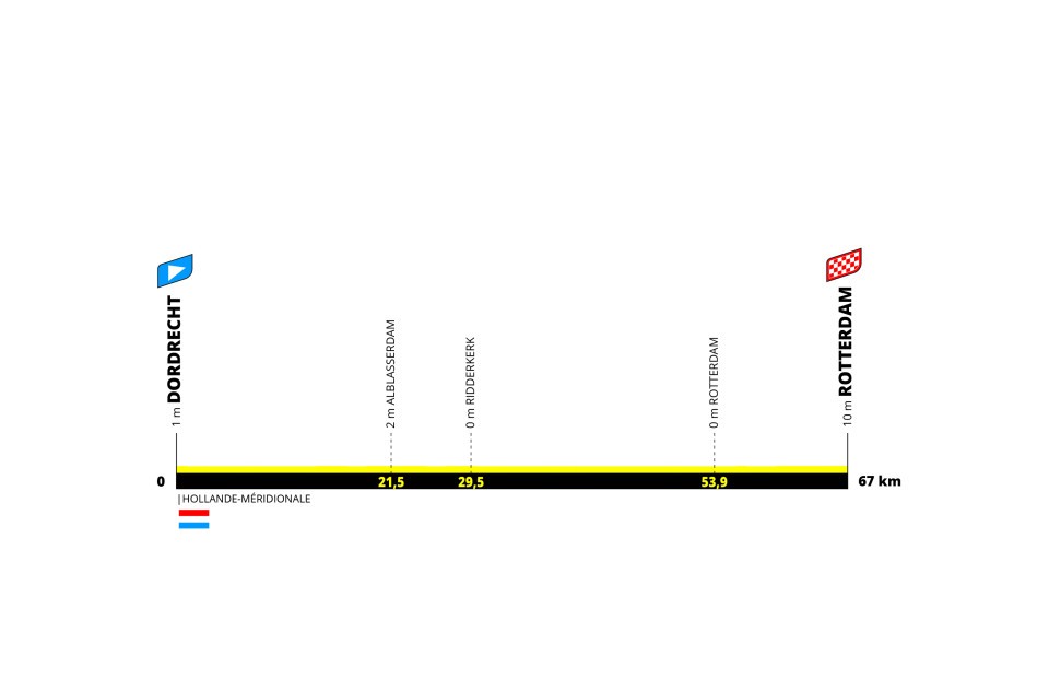 La prueba comienza con una etapa hasta La Haya, donde las velocistas aspiran a vestir el primer maillot amarillo de la carrera. Al día siguiente habrá dos etapas: una jornada de 67 km por la mañana y una corta contrarreloj de 6,3 km para finalizar el día..