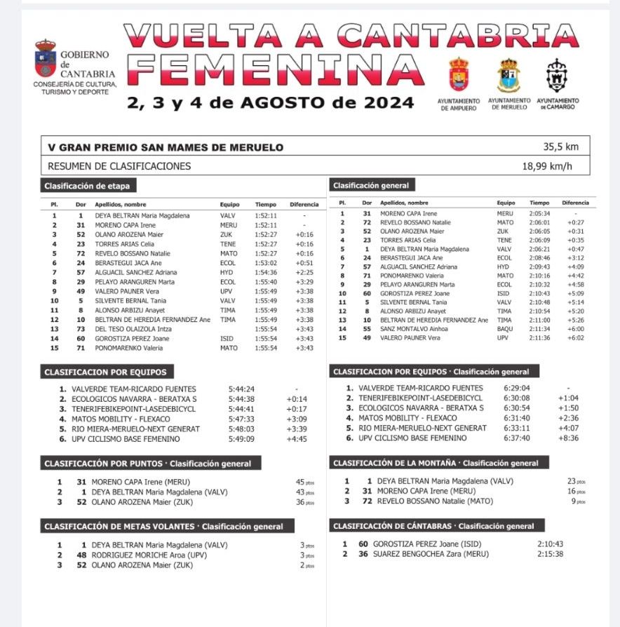 Lidia Castro (Río Miera-Meruelo) repite triunfo en la Vuelta a Cantabria Femenina. Hoy se impuesto en solitario en la categoría cadete en el V Gran Premio San Mamés de Meruelo. Naia Torrent (Baix) ha llegado segunda y Amaya Hernández (Ecológicos Navarra), tercera. Top 10 de Amanda Miravet (UPV-4°), Carla Bañuls (Teika-Alé, 6) y Noa Alderete (Teika-Alé, 7). Un buen regalo para las hermanas Miravet que hoy cumplían años.