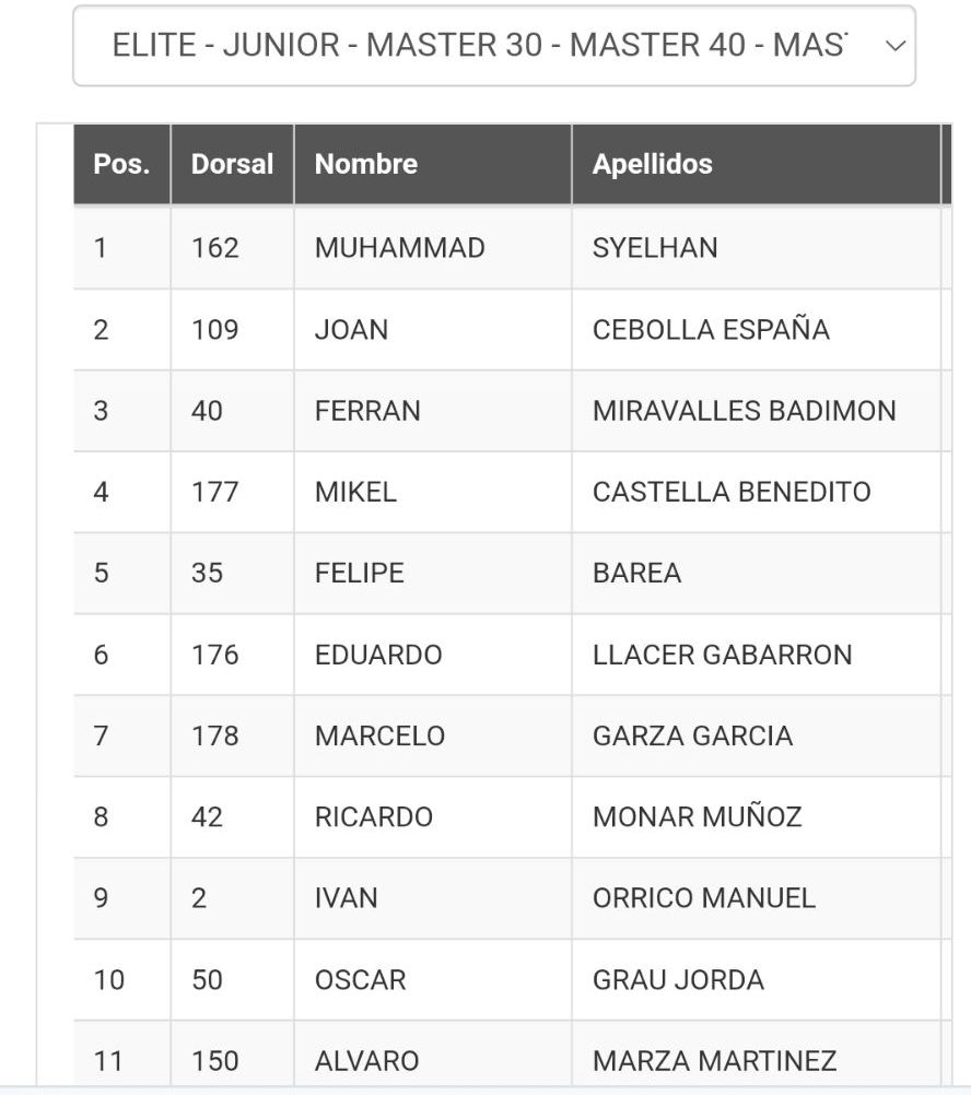 21 de julio. Rocafort. Clasificaciones