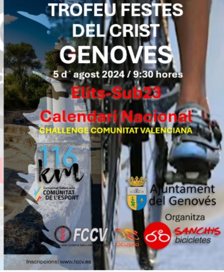 El pelotón élíte y sub 23 tiene hoy, día 5 agosto, una cita en el Trofeo Festes del Crist de la localidad de Genovés. La prueba es puntuable para la Challenge de la Comunitat Valenciana Élite-Sub23. Oliver Stenning (Equipo EBS) lidera el Torneo en la categoría élite y su compañero de escuadra Alexander Galea, en Sub 23. Alejandro Gómiz (BiciCosta) comanda la clasificación de las Metas Volantes y Gerard Ledesma (Esetec), la de la montaña.