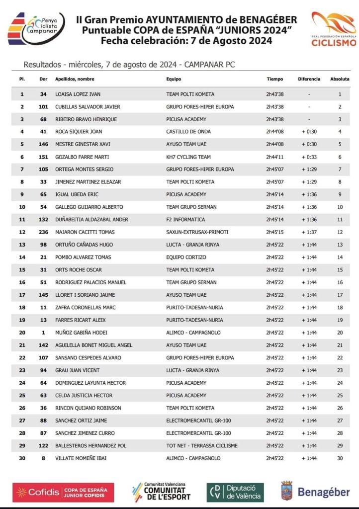 COPA DE ESPAÑA CARRETERA JÚNIOR (#CopaEspañaJuniorCofidis) General