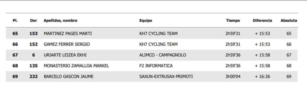 17 agosto – II G.P. Ayuntamiento Benagéber – Alto Turia – Benagéber (Valencia). Clasificaciones